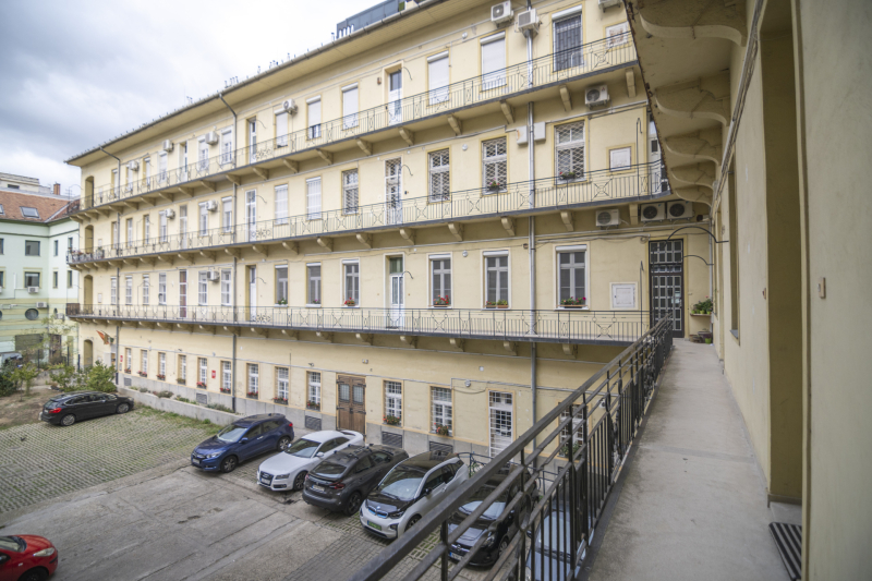 A társasház jó állapotú és rendezett, a belső udvarban parkolási lehetőség is rendelkezésre áll — ritka előny a belvárosban!