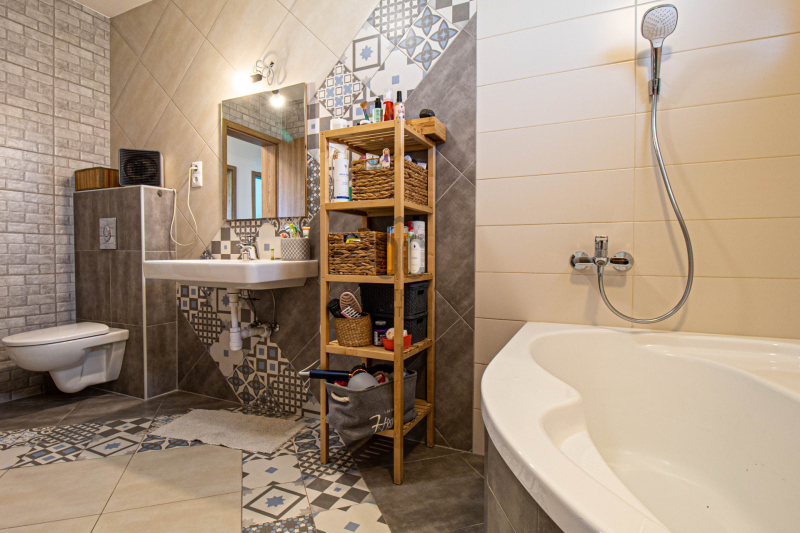 fürdőszoba tusolóval és fürdőkáddal, külön WC