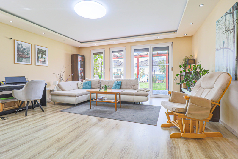 Soprontól mindössze néhány kilométerre, Harka egyik csendes utcájában kerül eladásra ez a 2018-ben épült, 120 m² lakóterű, földszintes családi ház, 890 m²-es, szépen parkosított telken.