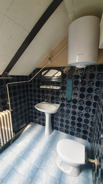 Emelet: 3 hálószoba, közlekedő, fürdőszoba káddal