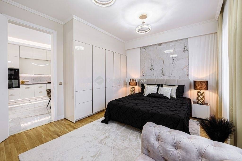 A lakásban a bútorok egyrészt neves lakberendező által egyedileg tervezett és gyártott exkluzív, illetve egyedi olasz desing bútorokkal berendezett, melyeket még szebbé varázsolnak a gyönyörű textíliák.