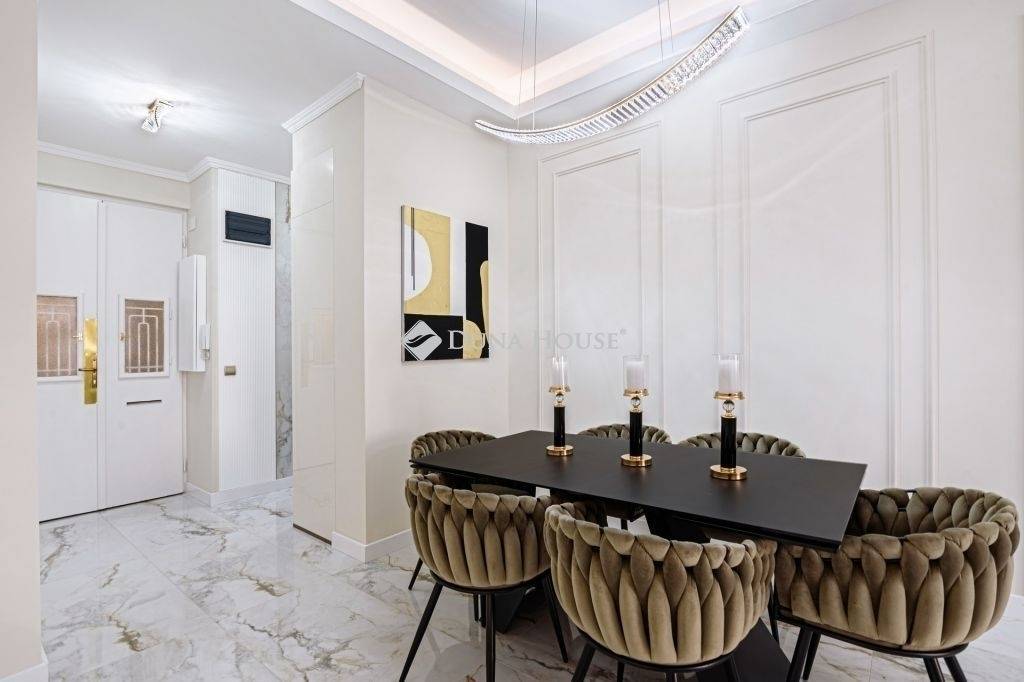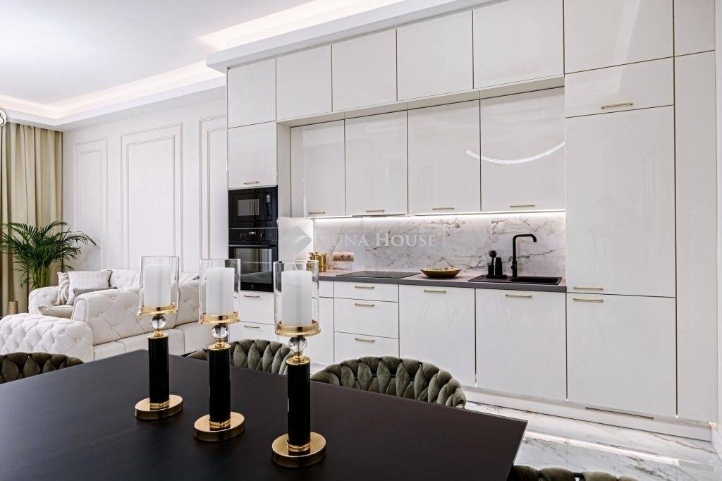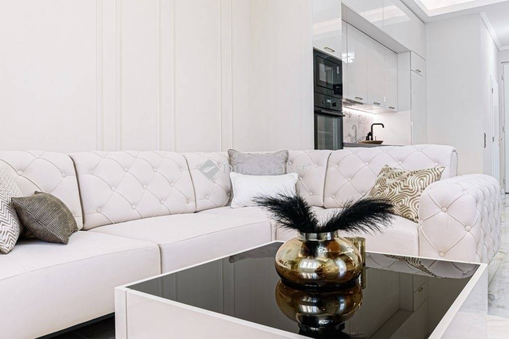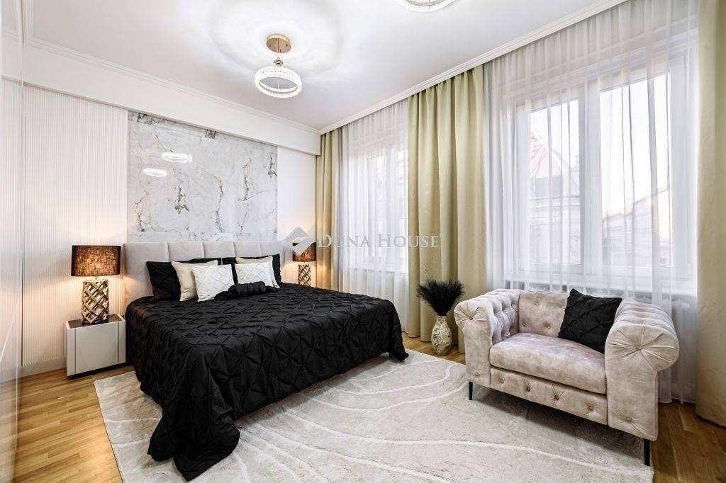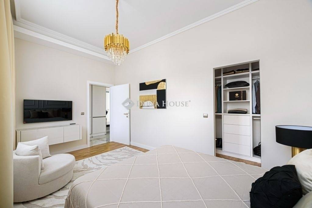 The furniture in the apartment is furnished with exclusive and unique Italian design furniture individually designed and manufactured by a renowned interior designer, which is made even more beautiful by the beautiful textiles.