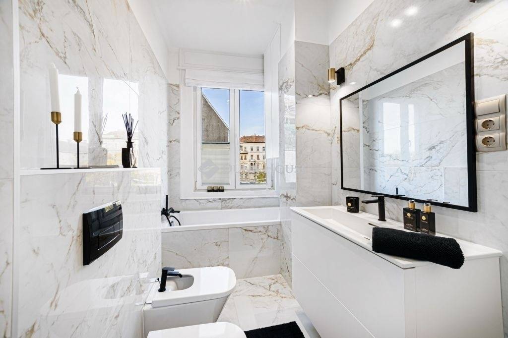 A fürdőszobákban kiváló minőségű szaniterek (Laufen, Blanco Blancozia, Arezzo...stb.) és a lakás stílusához illő olasz design burkolatok kerültek felhasználásra. A nappaliban és hálószobákban kiváló technikával rendelkező okos TV-k kerültek felszerelése, illetve Daikin klímák kerültek beépítésre. Neves designerek dekorációi igazán modern, mégis elegáns hangulatúvá teszik az ingatlant.