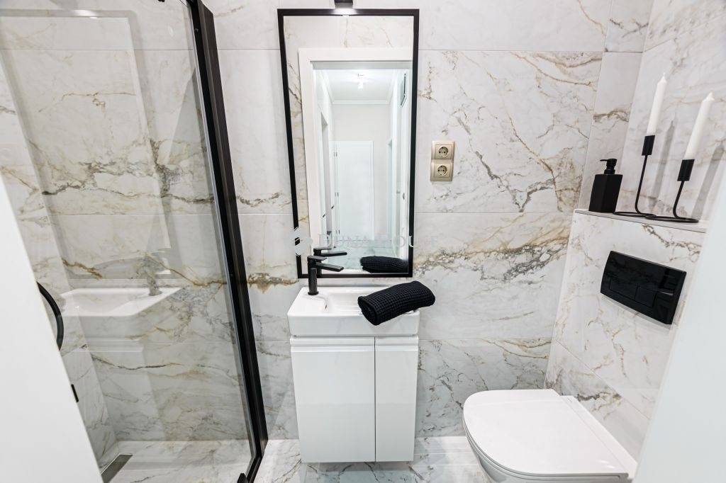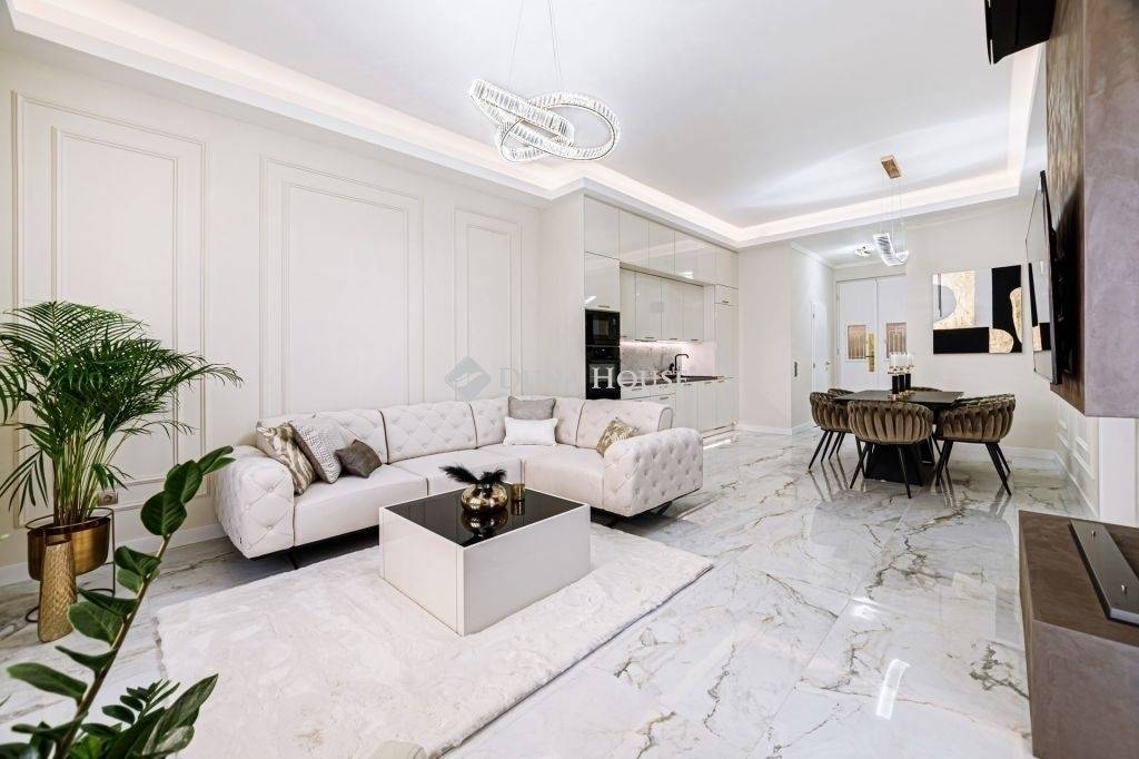In the bathrooms, high-quality sanitary ware (Laufen, Blanco Blancozia, Arezzo...etc.) and Italian design coverings matching the style of the apartment were used. Smart TVs with excellent technology were installed in the living room and bedrooms, and Daikin air conditioners were installed. Decorations by well-known designers give the property a truly modern, yet elegant atmosphere.