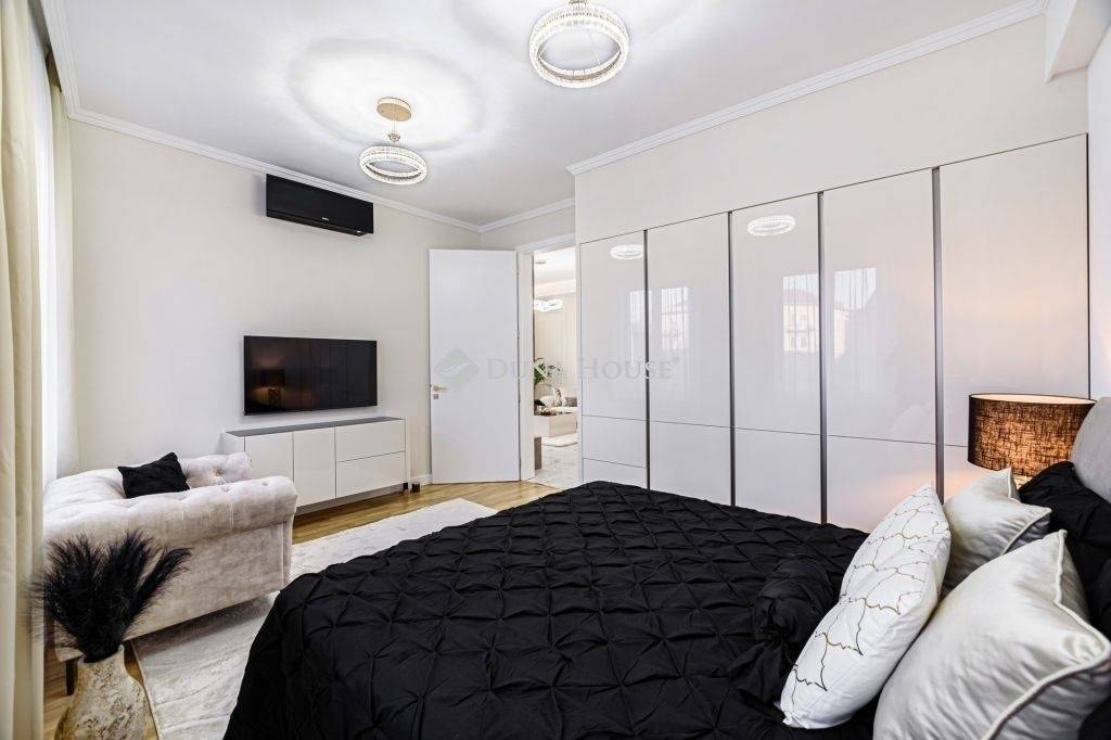 Every space has a built-in piece of furniture that can be suitable for storage, so for example the built-in wardrobes in the apartment provide plenty of storage space for the new residents. The apartment is also fully mechanized, equipped with a washer-dryer, a dishwasher, built-in quality kitchen appliances, sound insulation, and Daikin cooling and heating air conditioners.