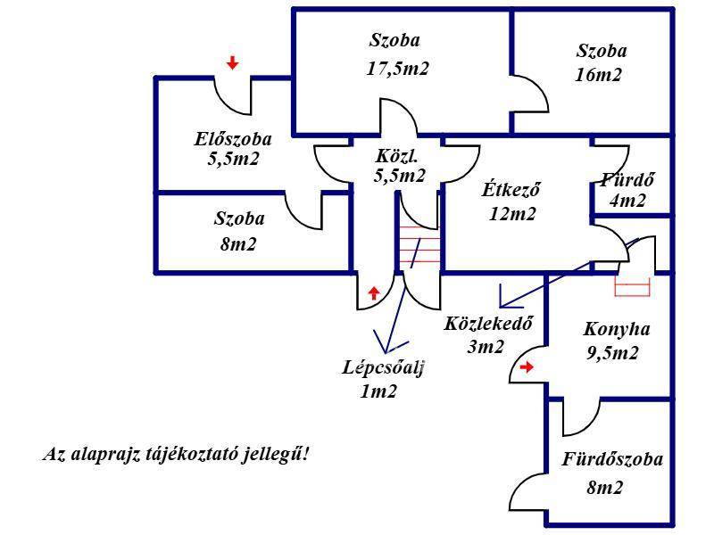 Maga az ingatlan 90 m2, ami egy 1153 m2-es telken fekszik.