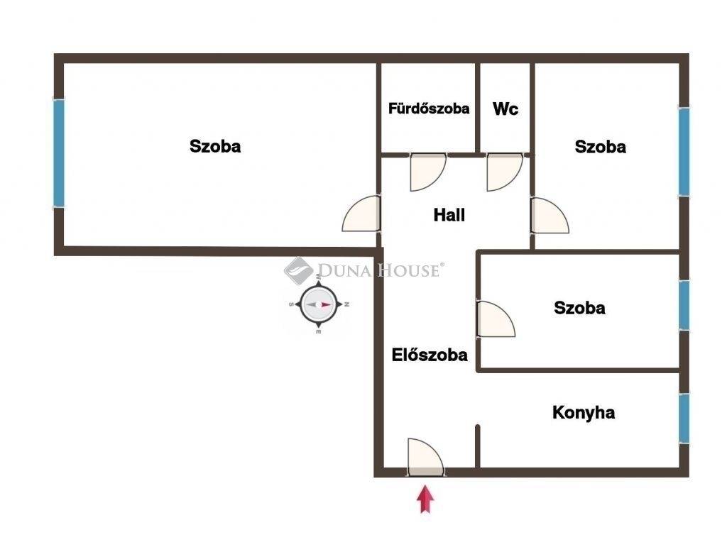 Az ingatlanban egy tágas nappaliszoba, két hálószoba, egy ablakos konyha, egy fürdőszoba, és egy külön wc helyiségek kaptak helyet, melyek mindegyike külön bejáratú, az előszobából, és az ahhoz csatlakozó hallból nyílik. Kiváló elrendezése okán családosok számára is nagyon jó választás, kényelmesen belakható életteret biztosít.