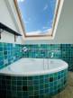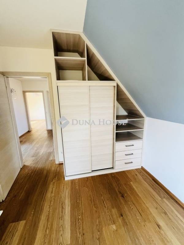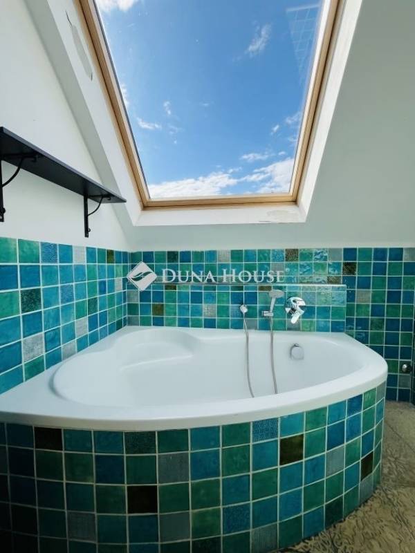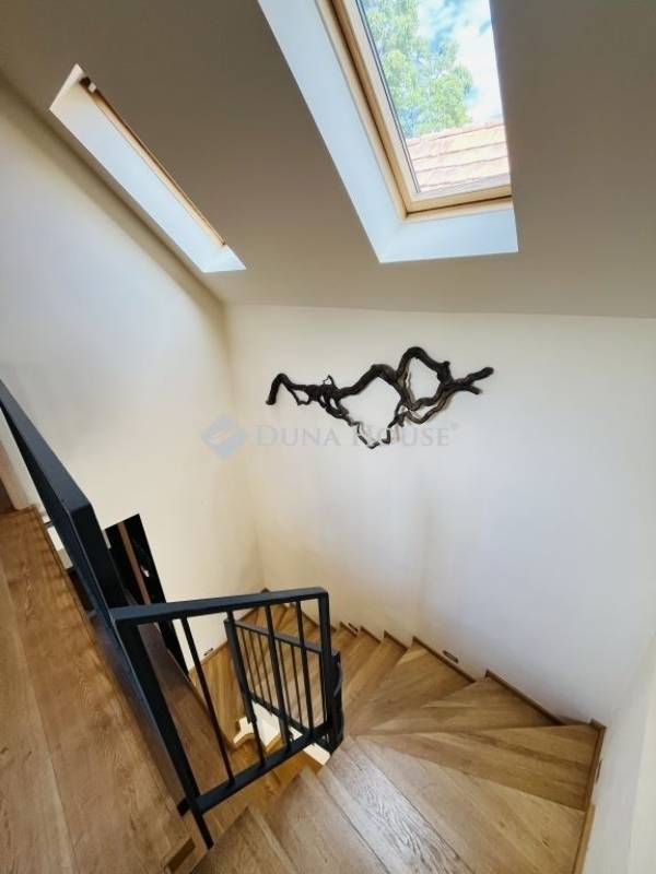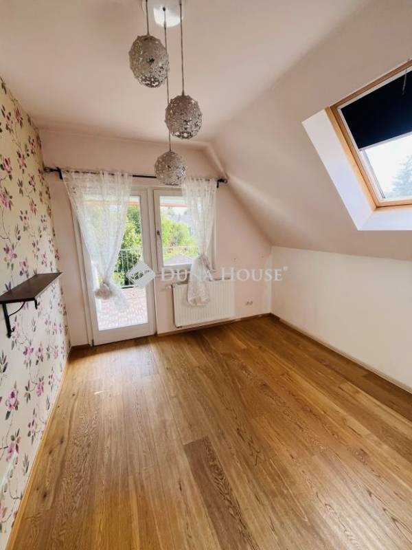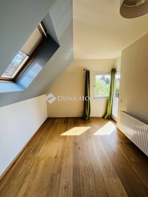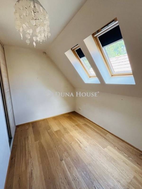 A felső szinten található a négy hálószoba - melyből kettő teraszos- illetve a fürdőkádas fürdőszoba. A szobákban árnyékolóval felszerelt Velux ablakok vannak.