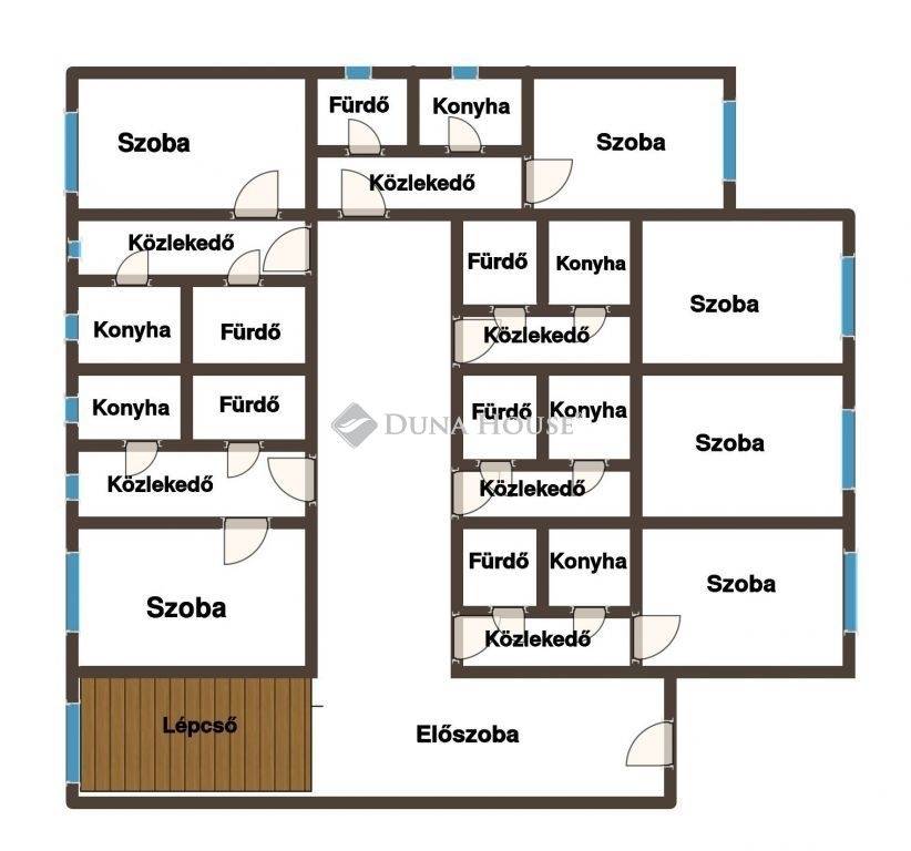 Az épületben 12 db különálló, egyenként kb. 22 m²-es garzonlakás található, mindegyikben: