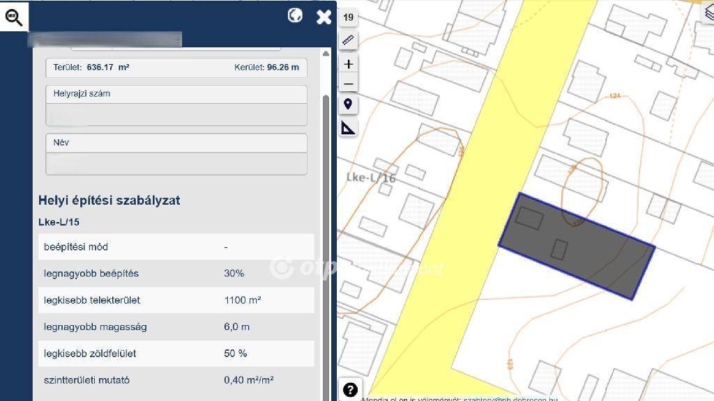 30% beépíthetőség, max. építménymagasság: 6 m-