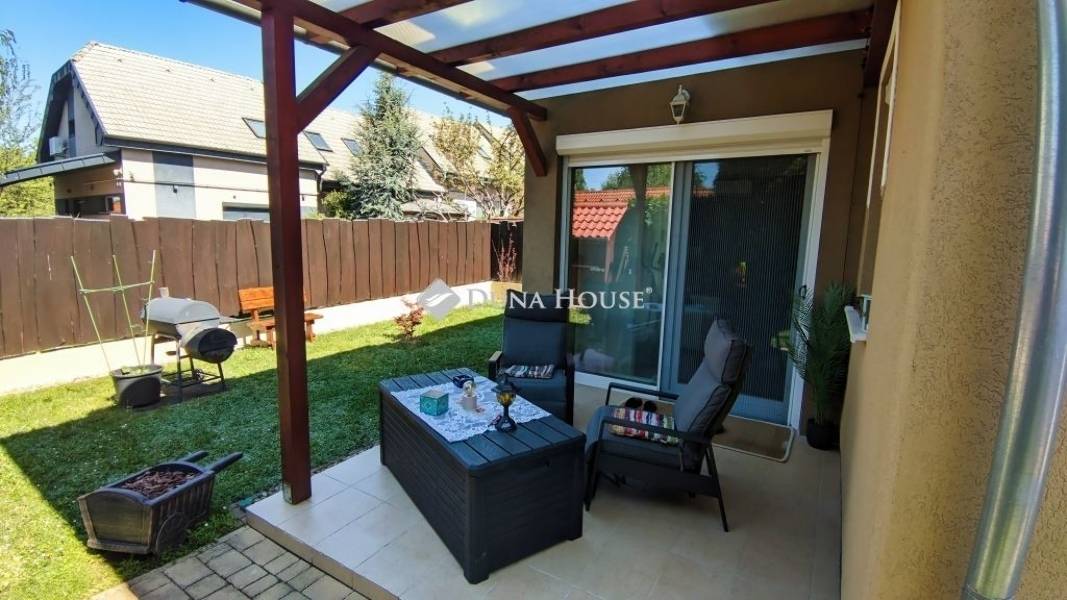 Az ingatlanhoz tartozik egy autóbeálló, egy különálló kerti tároló, valamint egy fedett terasz, amely tökéletes helyszín lehet baráti összejövetelekhez vagy a hétvégi pihenéshez.