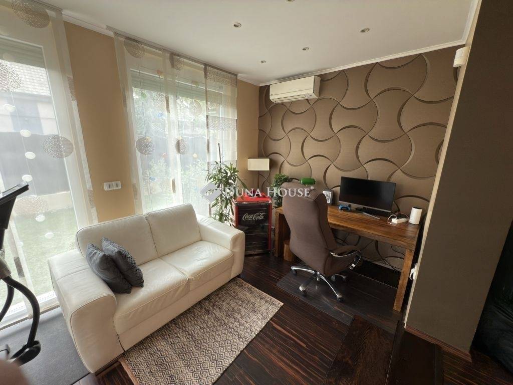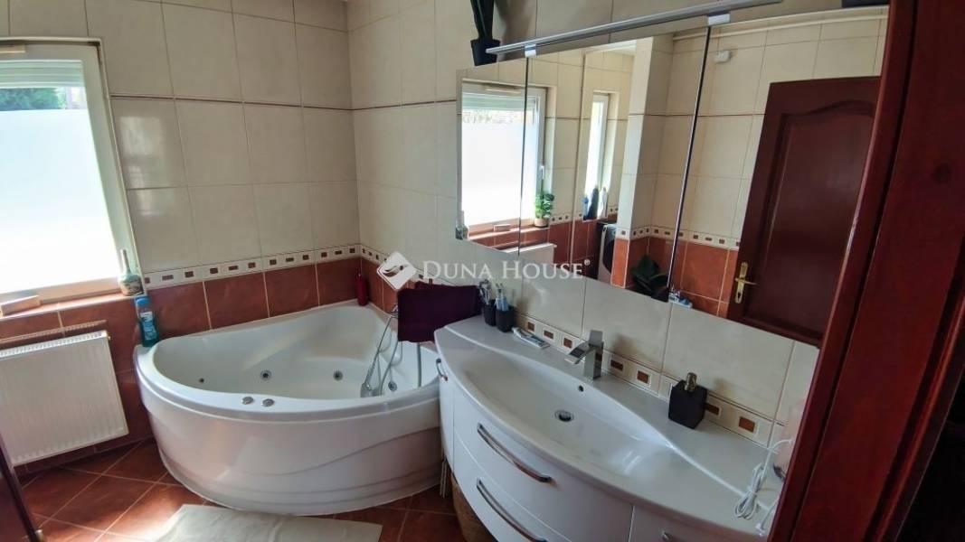 A ház minőségi, modern anyagokból épült, így hosszú távon is értékálló befektetés. A 5 cm-es homlokzati szigetelés gondoskodik az energiatakarékos működésről, míg a teljesen új, hő- és hangszigetelt nyílászárók biztosítják a csendes és komfortos belső tereket. Az egész ház klimatizált, ami különösen kellemes komfortérzetet nyújt a nyári hónapokban.