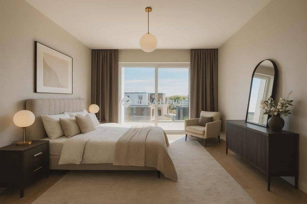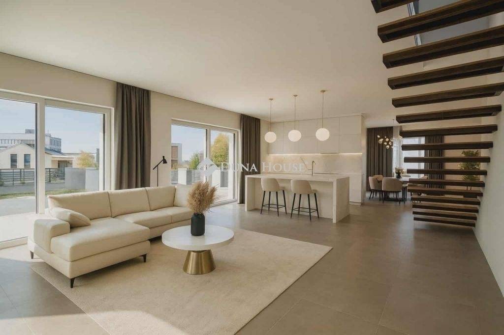 Újépítésű prémium ikerház a Szőlőliget Ökoparkban természetközeli, modern élet fiatal családoknak!Ha mindig is olyan otthonról álmodtál, ahol a modern technológia és a természet közelsége kéz a kézben jár, akkor ez a Szőlőliget Ökoparkban épülő új prémium ikerházfél neked szól!Ez a 70%-os készültségű, két szintes, közel 200 m²-es modern otthon 695 m²-es saját kerttel, két tágas, 40 m²-es terasszal, 20 m²-es erkéllyel és önálló garázzsal rendelkezik, minden adott egy kényelmes, nyugodt családi élethez.A garázs ára: 26 M Ft, az ikerházfél ára együtt: 225 M Ft.A ház elrendezése:A földszinten egy 79 m²-es, 3,2 méteres belmagasságú amerikai konyhás nappali, kamra, háztartási helyiség és vendég-WC található, közvetlen kijárattal a 40 m²-es fedett teraszra és kertbe.Az emeleten négy tágas hálószoba, két fürdőszoba, gardrób és egy 20 m²-es napfényes terasz kapott helyet.Főbb műszaki jellemzők:Falazat: 30 cm Porotherm + 15 cm hőszigetelésTető: Lindab lemezfedésNyílászárók: 3 rétegű üvegezés, elektromos alumínium redőnyFűtéshűtés: 16 kW-os levegővíz hőszivattyú, padlófűtés és mennyezethűtésSzellőzés: Wolf hővisszanyerős szellőztető rendszerExtrák: elektromos kertkapu, riasztó-előkészítés, üvegkorlátos terasz, prémium anyaghasználatBurkolatok és szaniterek még választhatók így teljesen a saját ízlésedre formálhatod új otthonodat.Miért különleges a Szőlőliget Ökopark?A Szőlőliget Ökopark prémium lakóövezet, ahol a fenntarthatóság és a közösségi szemlélet találkozik a modern építészeti megoldásokkal. Rendezett utcák, újépítésű házak, csendes és biztonságos környezet, valamint gyermekbarát közösség várja az ide költöző családokat.Ideális választás, ha...fiatal családként szeretnél nyugodt, biztonságos környezetben élni, fontos számodra a korszerű technológia és az alacsony rezsi, és olyan otthont keresel, ami értékálló befektetés is egyben.Ár: 225.000.000 Ft (garázzsal együtt)Készültség: 70% a belső kialakítás még személyre szabhatóA hirdetésben szereplő fotók között látványfotók is vannak.Ha szeretnéd megtapasztalni, milyen a modern családi élet a természet közelében,keress bizalommal, és mutatom a Szőlőliget Ökopark egyik legszebb otthonát!