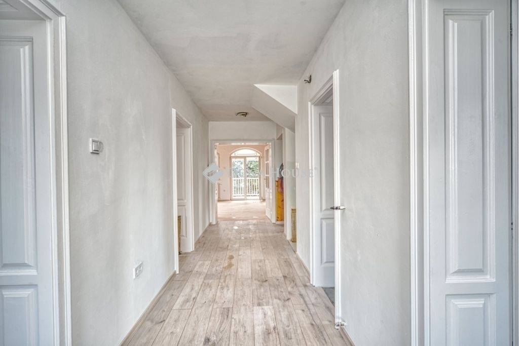 XVIII. KERÜLET BÓKAY-KERT SZÍVÉBEN!XVIII. kerület közkedvelt részén a Bókay kert szomszédságában eladó egy otthonos, hangulatos, nettó 386 nm-es, bruttó 456 nm-es, körbejárható, önálló családi ház.A családi otthon különlegessége, hogy jelen állapotában a három szinten, három teljeskörűen kialakított teljes értékű lakásból áll.Az épület nem utcafronti, körbejárható családi ház. Az ingatlan tájolását tekintve előnyös, mert ablakai mind a négy égtájra nyílnak, ezáltal világos és hangulatos az épület.Az ház teher-, per-, jog- és igénymentes, hitelezhető.A telek össz mérete 745 nm.Az ingatlanhoz séta közelben több üzlet (Lidl Spar, Aldi, DM, stb.) és általános iskola, óvoda és bölcsőde, illetve rendelőintézet valamint buszmegálló található. Bármely busszal az M3-as metróvonal 10 perc alatt elérhető. Az M0 autóút negyedórán belül elérhető.A családi otthonban kialakításra került egy földszinti, illetve egy első emeleti és a műszakilag hozzá tartozó tetőtéri részből álló önálló lakás. A ház szuterén részén egy 106 nm-es pince húzódik, mely külső és belső lépcsőtéren egyaránt megközelíthető. Vállalkozás, illetve garázs céljára egyaránt alkalmas a szuterén. Az ingatlan 2000-ben épült. A jelenleg is zajló felújítási munkák várhatóan 2025. évben illetve 2026. év első negyedévében érnek véget.A földszinti lakás hasznos alapterülete: 93 nm, a terasz: 42 nm, és a saját pince rész 33 nm.Az emeleti lakás hasznos alapterülete: 143 nm, a saját szuterén rész: 73,67 nm.A telek végében egy 44 nm-es épület található, mely választása szerint akár az Öné is lehet! Az ingatlan 1 szoba plusz amerikai konyhás nappaliból, kis előtérből és zuhanyzós fürdő WC helységből áll. A fűtést és a meleg vizet kondenzációs kazán biztosítja.Az egész épületre jellemző műszaki adatok:- az épület 15 cm szigeteléssel ellátott - a nyílászárók műanyag típusúak, redőnnyel és szúnyoghálóval ellátva- a földszinten a melegvíz ellátását villanybojler biztosítja, a fűtést 3 db klíma látja el, melyek nyáron hűtenek is- az első emeleten és a tetőtéren kondenzációs kazán biztosítja a fűtést és a meleg vizet, valamint egy napkollektor is üzemel- a villanyvezeték rézcsővel kiépített,- a vízvezetékek cseréje megtörtént,- minden helyiség felújított,- a tető zsindellyel borított,- a földszinti lakás belmagassága, 2,8 m az emeleti lakás belmagassága: 2,6 m,- a térburkolatok kövesek,- a lakásokban a szobák parkettásak, a közlekedő helyiségek és a vizesblokkok járólaposak- az utcafronton több autó parkolására van lehetőség.A konyhabútor kivitelezése mindhárom lakásban az új tulajdonos feladata!A földszint:A földszinti rész tágas közlekedőből, önállóan nyíló kettő darab keleti tájolású 15 nm-es és 12 nm-es szobából, illetve egy zuhanyzós fürdőszobából és külön WC helyiségből áll. A keleti tájolású konyhához, az egy légterű a 28 nm-es nappali tartozik, mely nyugati fekvésű. A nappali a 42 nm-es terasszal kapcsolatos. Első emelet, és tetőtér: Az első emeleten a nyugati tájolású 27 nm-es amerikai konyhás nappali mellett három szoba került kialakításra, melyből a 16 nm-es déli, a 15 nm-es és a 12 nm-es szoba déli tájolású. A zuhanyzós fürdőszoba WC-vel együtt nyugati fekvésű, illetve külön kialakításra került egy WC helyiség is. A közlekedő igen tágas, a szobák önállóan nyílnak (egyik sem zsákszoba!). Az emeleti részen két terasz is található, egyik keleti (kisebb és utcafronti), a másik nyugati tájolású (nagyobb és kertre néző), mindkettő kényelmes elrendezésű.A tetőtérben található két nagyobb és egy kisebb helyiség, melyben, konyha is kialakításra kerül.. A tetőtérben kialakításra került egy zuhanyzós fürdőszoba WC-vel együtt.Az ingatlan méretét tekintve, alkalmas több generáció összeköltözésére, vállalkozás üzemeltetésére. Amennyiben felkeltette érdeklődését, és úgy érzi, hogy a hirdetéssel rátalált ideális otthonára, további információért és megtekintéssel kapcsolatban keressen bizalommal!Jöjjön el és tekintse meg leendő otthonát, várom megtisztelő hívását!