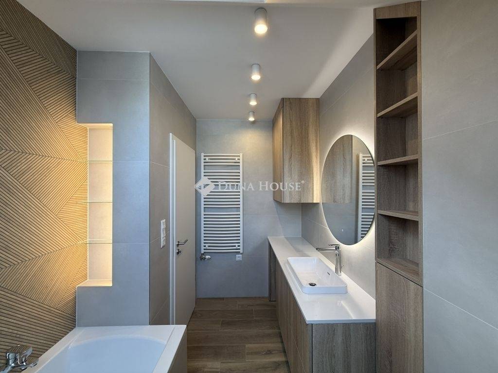 Kispest kertvárosi részén, csendes utcában kínálunk eladásra egy modern, energiatakarékos, kétszintes lakást, amelyhez saját kertrész és fedett terasz is tartozik. Belsőépítész tervek alapján prémium minőségű burkolatokkal, szaniterekkel, egyedi gyártású beépített bútorokkal (konyha, fürdő, előtér) és dekoratív világítással!Az ingatlan 107 m² nettó alapterületű, 28,5 m²-es terasszal, valamint egy 60 m²-es előkerttel rendelkezik. A lakás hűtését-fűtését lakásonként külön hőszivattyú biztosítja padló- és mennyezetfűtéssel, helyiségenként szabályozható NGBS rendszeren keresztül. A prémium burkolatok, egyedi gyártású bútorok és konyhagépek a vételár részét képezik. A társasházban mindössze 3 lakás található, így kisebb lakóközösségre vágyók számára ideális választás. Már csak két lakás elérhető ne maradjon le, tekintse meg személyesen is elkészült otthonainkat!