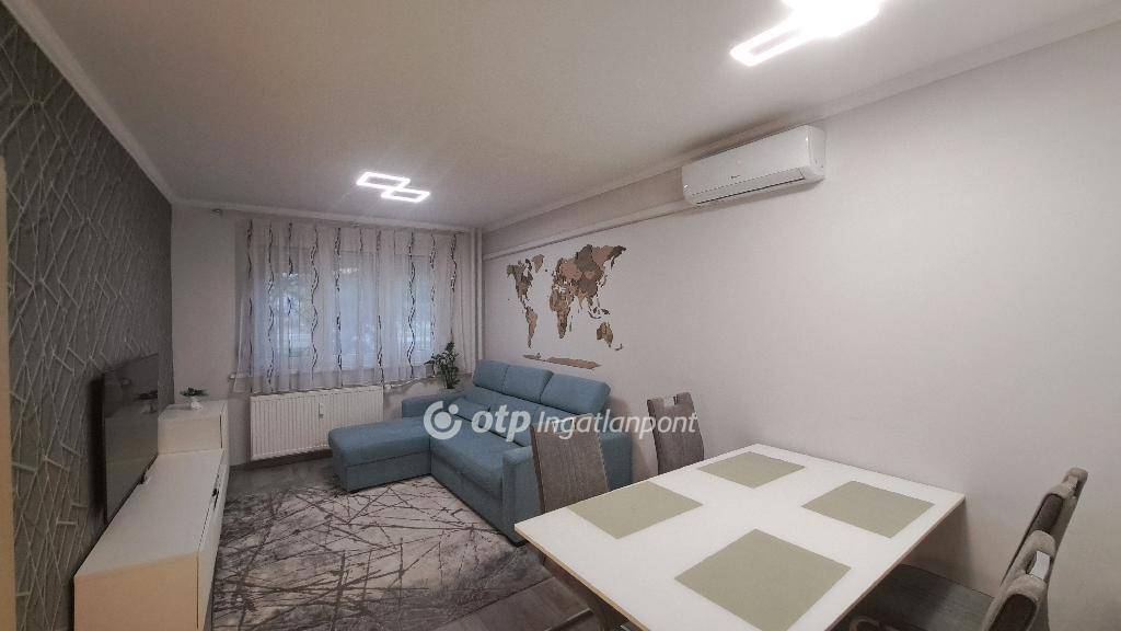 A 2+2 szobás felújított, szélső lakás 65 nm-es , 3 éve került sor a felújítására. A bejárati ajtó hangszigetelt, az ablakok redőnyösek. 2 klíma hűt-fűt, a távfűtés a legolcsóbb és legkényelmesebb megoldás. Az elektromos hálózat felújított, 3x16 A-re bővített. A berendezés a vételár részét képezi, optimális egy 3-4 fős család részére.