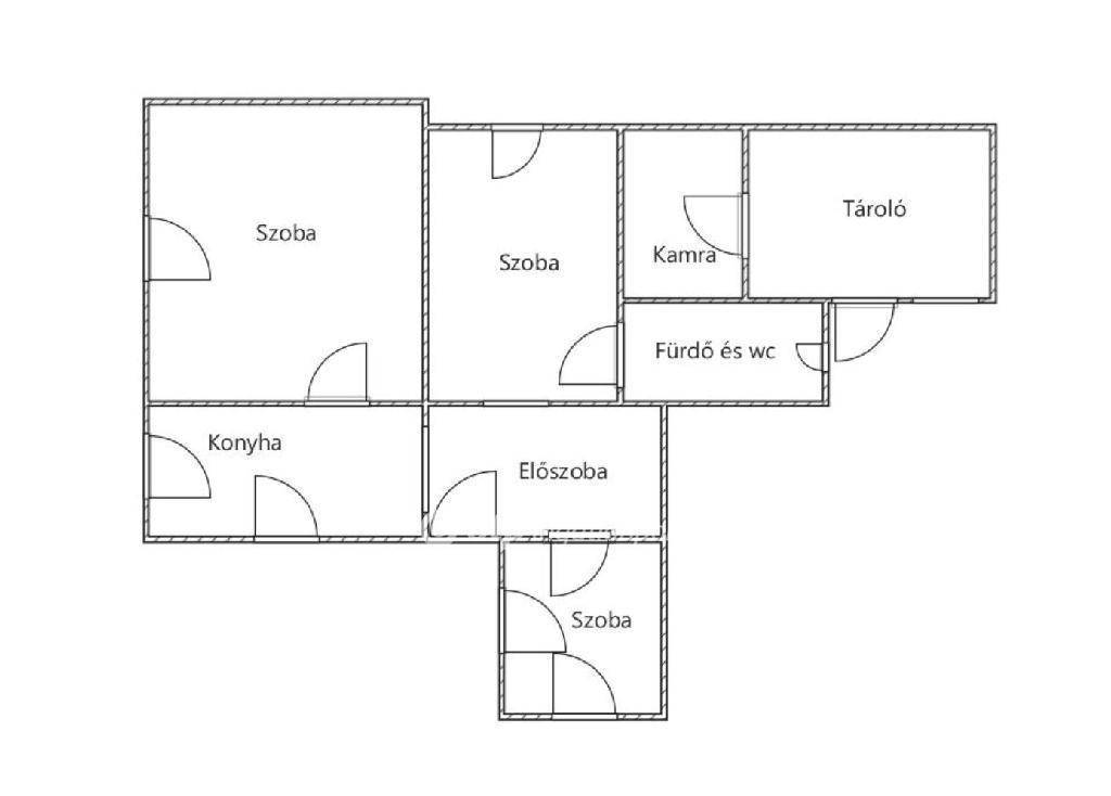 A ház 2 egész szoba, 1 félszoba, előszoba, konyha, fürdőszoba és WC (egyben) helyiségekből áll. Külön bejáraton megközelíthető a kamra és egy tároló. A kamra és a tároló a házba való közvetlen átjárásra is egybe nyitható. A tetőtér beépíthető.
