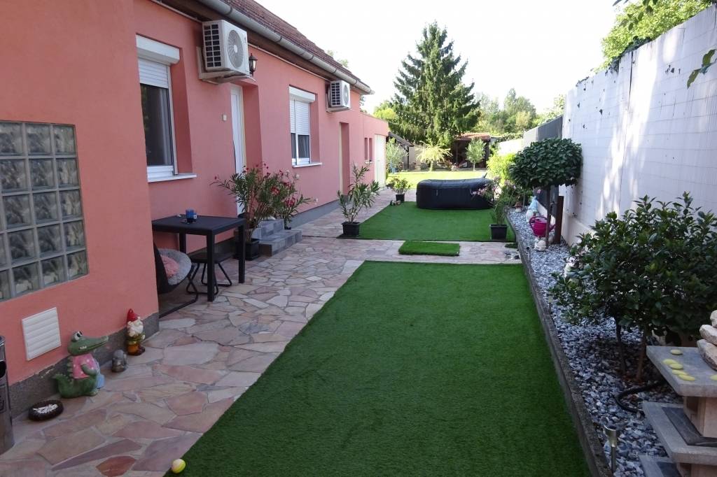 Székesfehérváron a Bem József utcában eladó egy tégla építésű, hosszas elrendezésű földszintes családi ház. A telek mérete 510 nm, a ház hasznos alapterülete 92 nm. Teljes közművel rendelkezik. A fűtésre gázkazán és 4 db klíma berendezés is rendelkezésre áll, H tarifával. A házat nyolc éve folyamatosan újítja a tulajdonos. Vezetékek kicserélve, a kert parkosítva. Zárt kapualjon kell bemenni a telekre. A bejárattól balra található a teljesen felújított konyha, hasznos alapterülete 24,24 nm, ebből nyílik az első szoba, mely szintén 24,24 nm. A bejárattal szembe lévő előszobán keresztül jutunk a kazánházba, WC-be és a fürdőszobába. Az előszobából tovább haladva található egy kisebb 10,47 nm-es szoba, melynek kettő bejárata van. Az épület két bejárattal rendelkezik. A második bejárattal szemben előtér, kamra és jobbra egy másik szoba található, melynek hasznos alapterülete 14,22 nm.