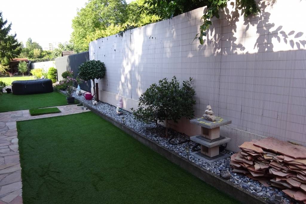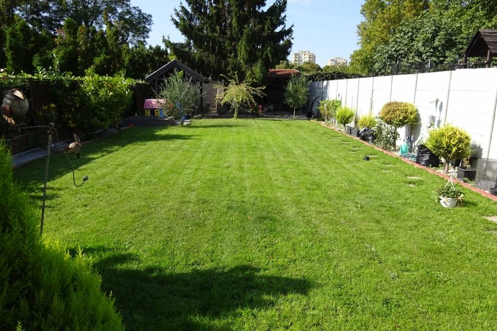 Kiépített locsoló berendezés, ásott kút, kerti sütögető a telek végében.