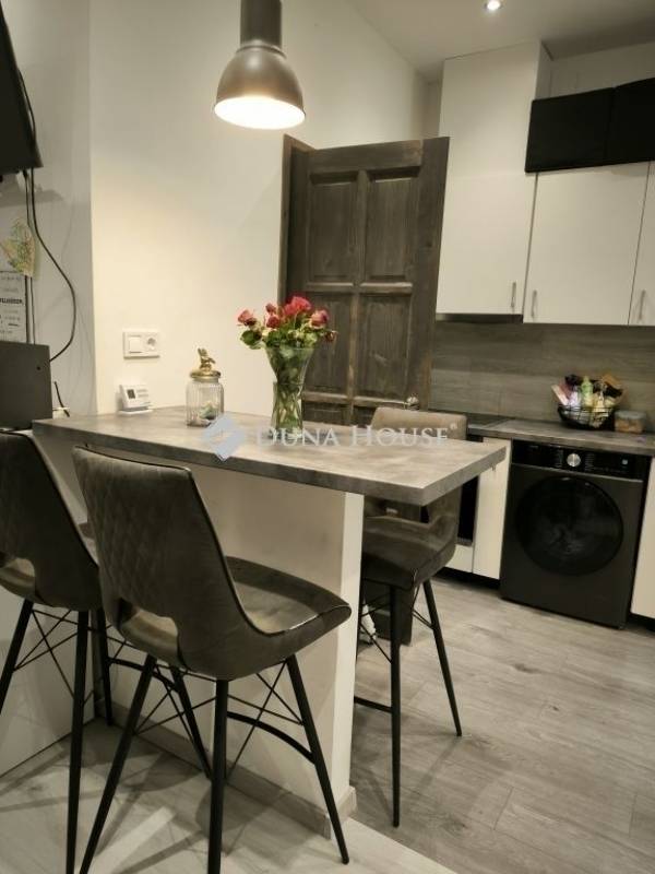 Eladó felújított garzonlakás csendes kertvárosi övezetben Újhegy, X. kerületKőbánya remek részén, az Újhegyi lakótelep mellett, csendes utcában, kertvárosi környezetben eladó egy teljeskörűen felújított, földszinti garzonlakás egy kis létszámú, rendezett társasházban.Főbb jellemzők:Teljeskörű felújítás (minden új: klíma, vezetékek, fűtésrendszer, burkolatok, nyílászárók)Amerikai konyhás nappali a földszinten + fürdőszobaEmeleten egy légterű hálószoba, akár 2 szobára is oszthatóA lakás világos, barátságos hangulatúTartozik hozzá saját terasz, autóbeálló és pinceExtra felszereltség:Modern, gépesített konyhabútorHűtő-fűtő klímaEnergiatakarékos világításKiváló lokáció:Pár perc séta buszmegálló, gyors eljutás KÖKI vagy Örs vezér tér feléKiváló infrastruktúra: a közelben bevásárlási lehetőségek, iskola, óvoda, bölcsőde, orvosi rendelő, üzletekIdeális választás:Fiatal pároknak első lakáskéntBefektetésre is kiváló, könnyen kiadhatóA ház rendezett, a lakóközösség barátságos.Független hiteltanácsadás,hitel babaváró csok ingyenes ügyintézése.Bármely kérdés ,megtekintés esetén állok rendelkezésre.