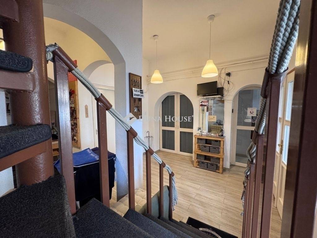Eladó többfunkciós családi ház / működő szépségszalon XVII. kerületXVII. kerületben, aszfaltos, jól megközelíthető utcában eladásra kínálunk egy önálló, 2 szintes, 8 szobás családi házat, amely jelenleg 30 éve működő, bejáratott szépségszalonként üzemel. Telek: 365 m² Ház nettó alapterülete: 155 m² Parkolás: 6 autó számára a betonozott udvaronFöldszint (100 m² + 13 m² fedett terasz)* 4 szoba (31,5 m², 15,5 m², 6,1 m², 5,6 m²)* előtér, étkező, öltöző* mosókonyha, zuhanyzós fürdő, WC* kazánházEmelet (nettó 55 m²)* hangulatos váróhelyiség* 4 szoba(A felső szint könnyűszerkezetes, igény szerint könnyen átalakítható.)Műszaki adatok:* folyamatosan karbantartott ingatlan* 2 éve hőszigetelt* új kazán* korábban tetőfelújítás* műanyag, redőnyös nyílászárók* szobánként légkondicionáló* fűtés: padlófűtésA telek osztatlan közös, de ügyvédi használati megosztással rendezett. A másik ingatlan teljesen szeparált, külön utcai bejárattal rendelkezik.A környék könnyen megközelíthető, buszmegálló és vasútállomás a közelben. Igény esetén a ház könnyen lakóházzá alakítható!