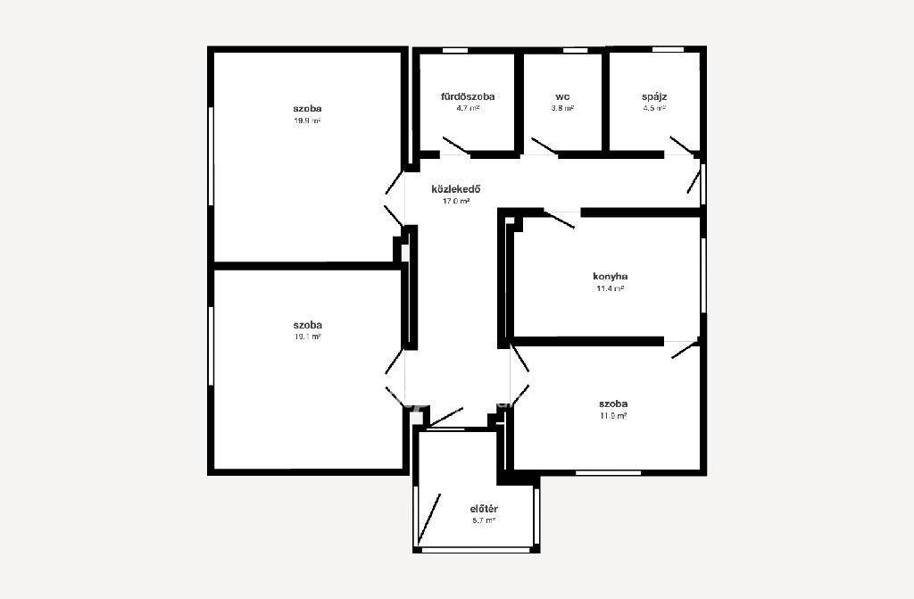 3 szoba, külön WC, fürdőszoba, konyha, közlekedő