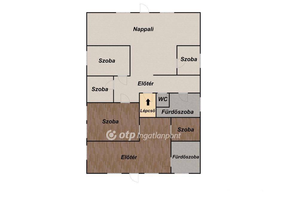 8 tágas szoba: az első szinten 4 háló, a második emeleten további 4 helyiség