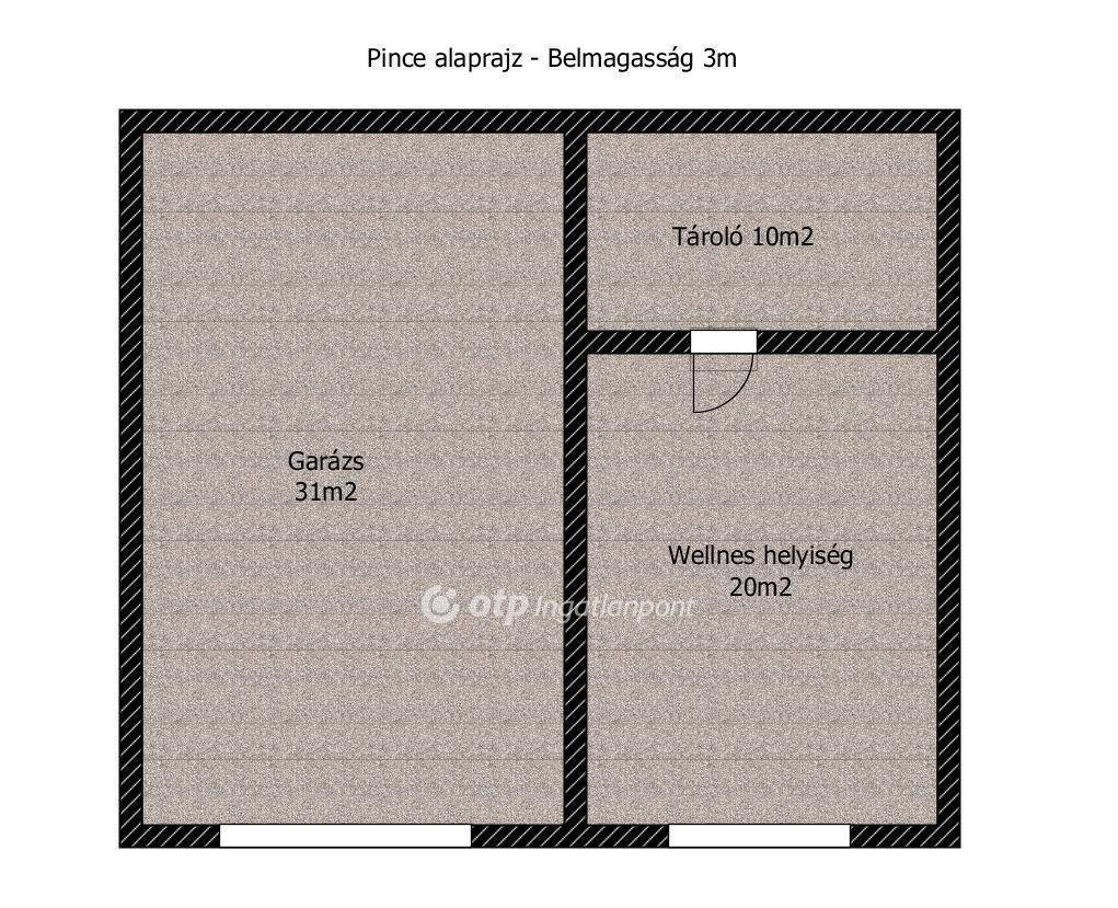A házban 3 szint lett kialakítva. Az alsó - pince szinten található egy nagy garázs, egy tároló és egy wellness helyiség szaunával és szoláriummal, kondigépekkel, jakuzzival. A pince belmagassága 3 méter!