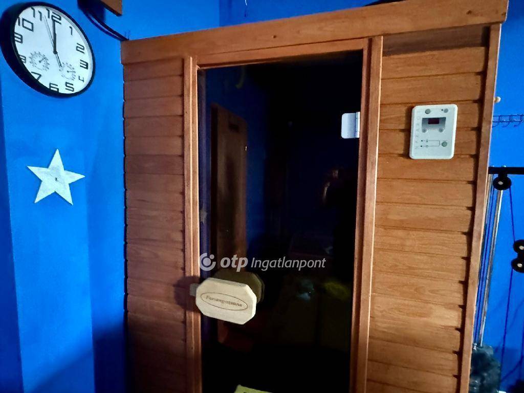 A házhoz tartozik egy fedett 21m2-es terasz és egy különálló kétautós garázs is szerelő aknával. A garázskapuk és a kapu mindenhol elektromos távirányítóval nyithatóak.