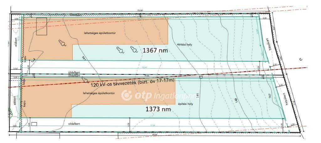 Két, egymás mellett elhelyezkedő, hosszabb oldalukon határos telekről van szó, egyenként 1367 és 1373 nm területtel.