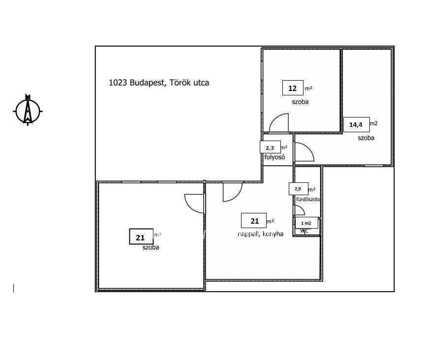 Eladó modern lakás kiváló elrendezéssel. 74 nm, amerikai konyhás nappali + 3 szoba.( II.Török utca)