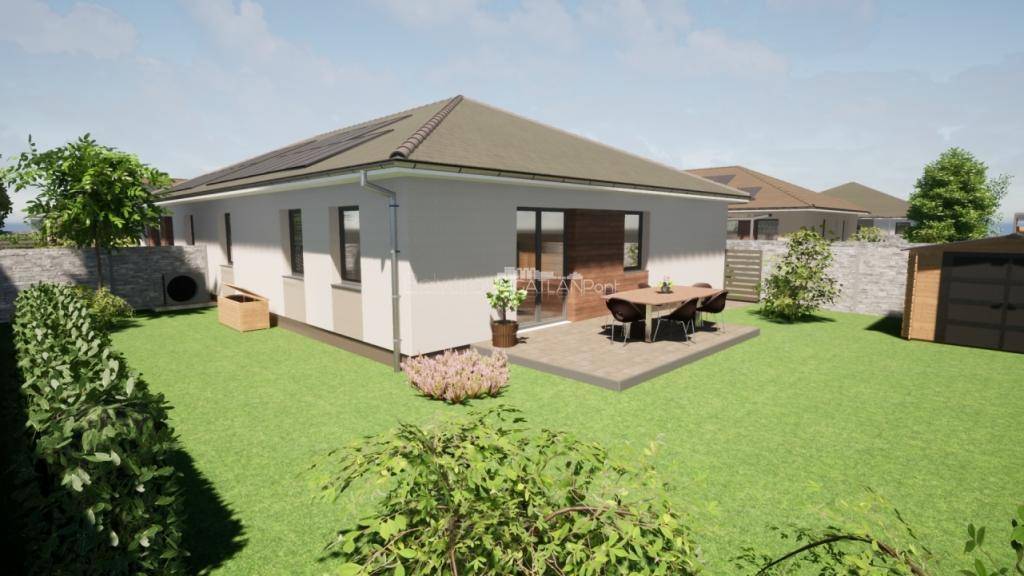 - 5m3 csapadékgyűjtőbe lesz bekötve a ház esővize szikkasztóval ellátva, ami kiválóan alkalmas a növényzet öntözésére. Így nem kell kutat fúrni és nem borul fel a terület vízháztartása. Kerti csap is kialakításra kerül.