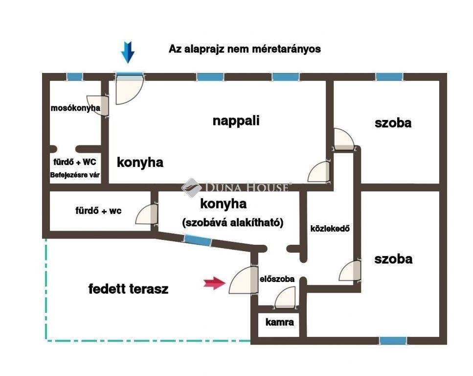 Helyiségek:- 2 hálószoba- nappali + amerikai konyha- fürdő + wc- mosókonyha- kamra- további fürdő + wc (befejezésre vár, kiállások és burkolatok megvannak)