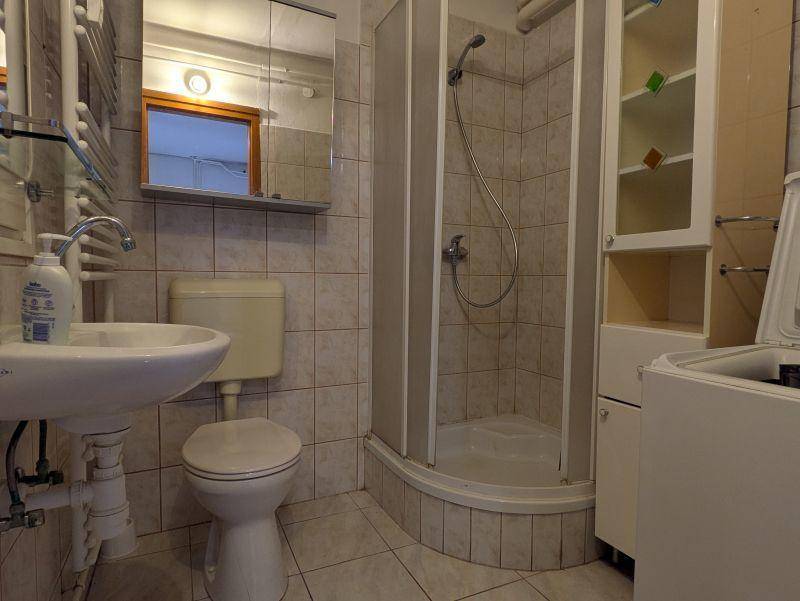 Konyha: Jól karbantartott, szögletes elrendezésű konyhabútor.Fürdőszoba: Zuhanykabinos, WC-vel és törölközőszárító radiátorral felszerelt.