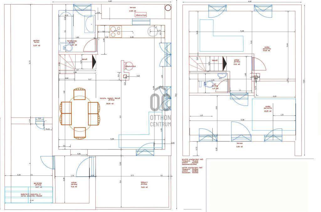 A ház alapterülete bruttó 121 m2 (nettó 93 m2), a telek területe 350 m2.