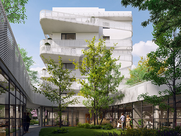 A lakópark 2 épületből álló épületegyüttes 5 lépcsőházzal, amely 3-5, valamint 6 emelettel rendelkezik.