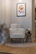 The living room is bright and airy, enhanced by large windows and a balanced palette of soft, neutral tones.