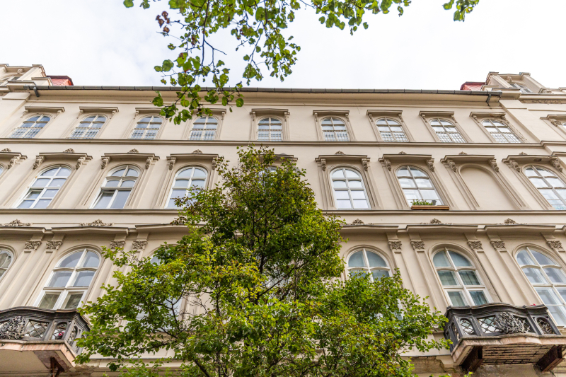 A XIX. század közepén épült társasház a klasszikus belvárosi polgári építészet egyik ékes példája. A homlokzat méltóságot sugároz, a tágas belső udvar hangulatos atmoszférát teremt, a lépcsőház pedig őrzi a korabeli építészeti részleteket.