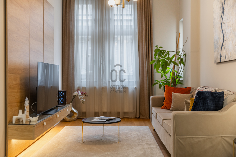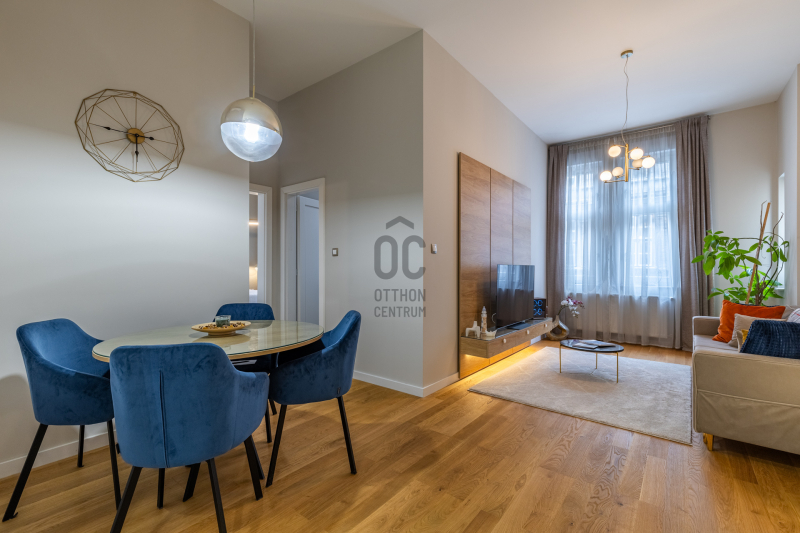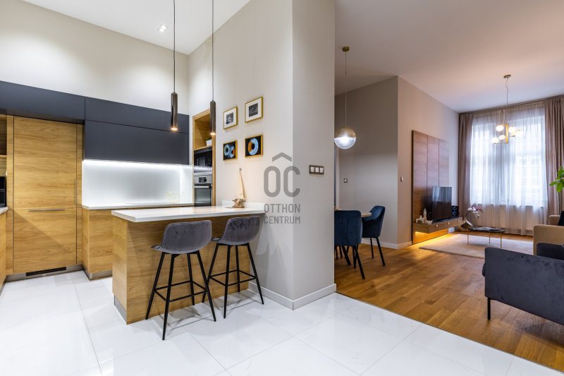 For sale: a fully renovated 79 m² apartment with a living room and two bedrooms, two bathrooms, located in the heart of downtown Budapest, on Királyi Pál Street.