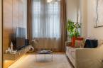 This apartment is set in a beautifully maintained early-1900s Art Nouveau building, showcasing the refined architectural details of its era.