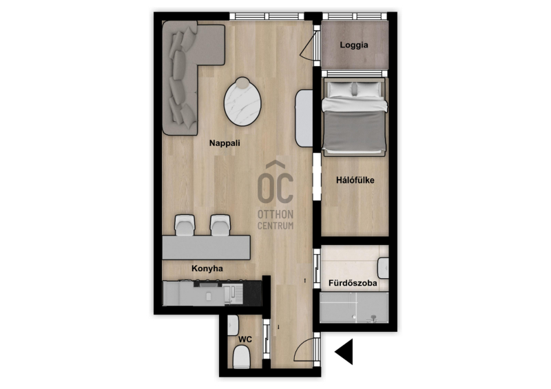A beépített loggia ideális hely a reggeli kávéhoz vagy esti kikapcsolódáshoz.