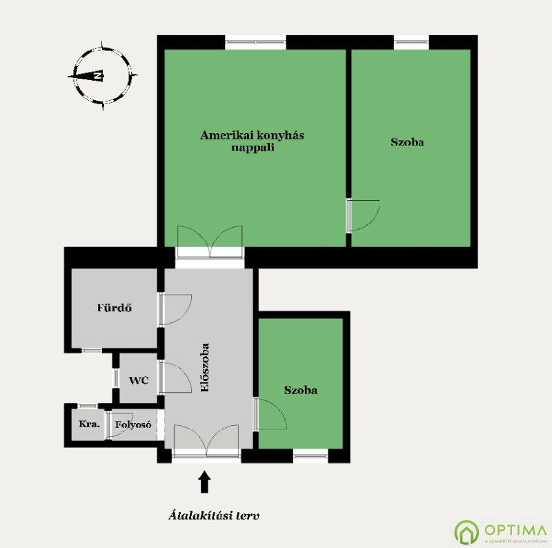 Az ingatlan könnyedén átalakítható akár 3 szobássá is.