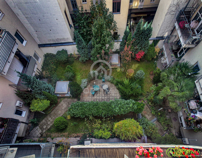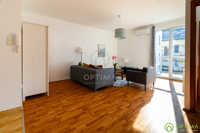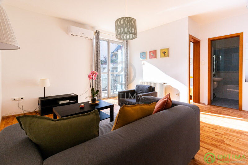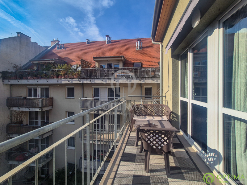 A lakáshoz tartozik egy 7 m2-es erkély is, mely az igényesen karbantartott belső kert felé néz.