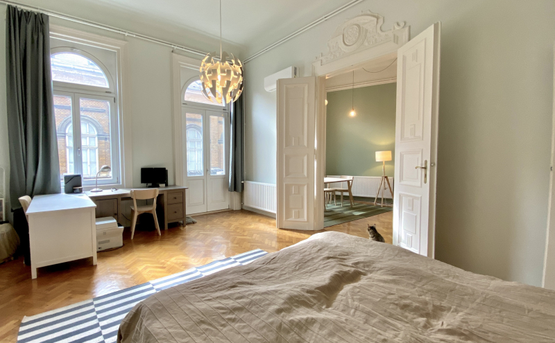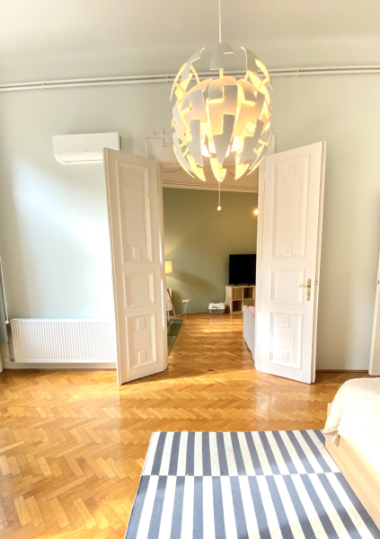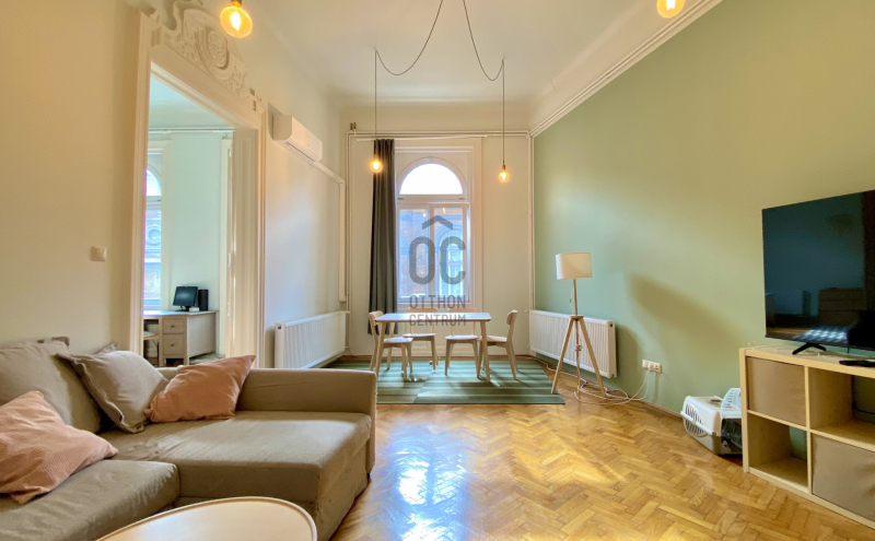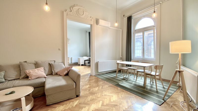 Fedezze fel ezt a különleges lehetőséget, amely fiatal felnőttek számára ideális választás lehet, akár saját lakás kereséséről, akár befektetési céllal gondolkodik. Budapest 07. kerületének szívében, a Belső Erzsébetváros egyik legfelkapottabb utcájában, a Kertész utcában található ez a kiváló állapotú, használt lakás, amely minden igényt kielégít. A műszakilag és esztétikailag is felújított, nagypolgári stílusú ingatlan alapterülete 83 négyzetméter, és két tágas szobával rendelkezik, amelyeket a nagy belmagasság és a világos, napfényes atmoszféra tesz még vonzóbbá. A gépesített konyhával rendelkező erkélyes lakás egy csendes utcában helyezkedik el, ahol a központi elhelyezkedés előnyeit maximálisan kihasználhatja.