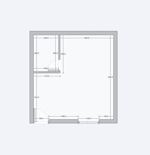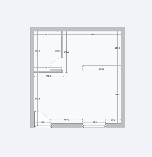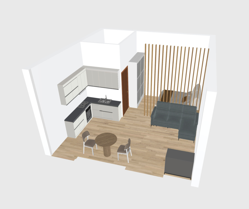 Elosztás: amerikai konyhás nappali, térelválasztóval elszeparált hálórész, fürdőszoba.