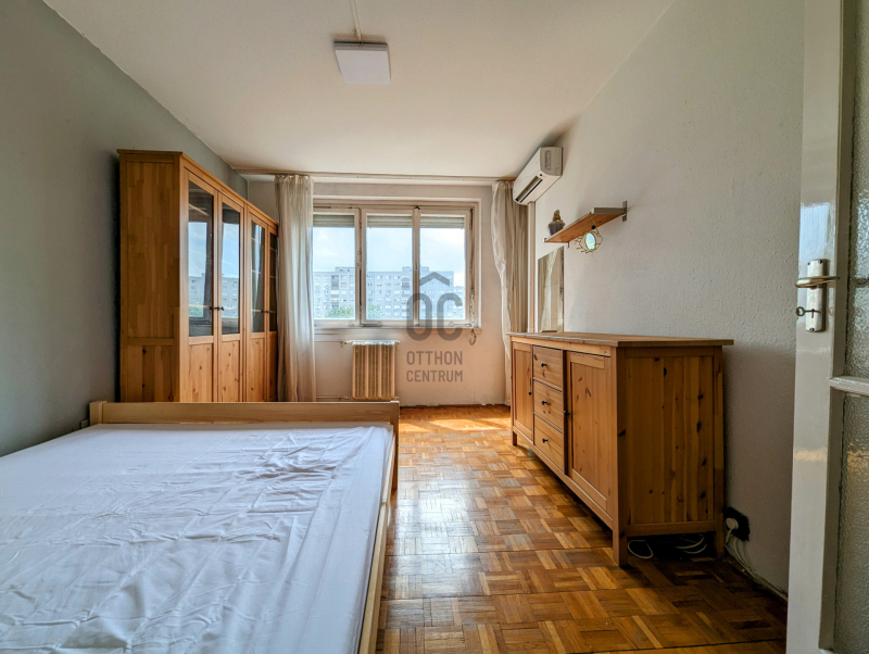 66 nm-es, 4. emeleti, kiváló elosztású, világos, tágas lakás. Nappali loggiaval, két hálószoba, fürdőszoba, wc, ablakos konyha kamrával, plusz egy gardrób helyiség, található a lakásban. Az összes helyiség külön, az előszobából, közlekedőből megközelíthető. A lakás bútorozott. Távfűtés biztosítja a meleget a lakásban, klíma berendezés pedig a hűtését. A szobákban parketta, a többi helyiségben pedig járólap található.