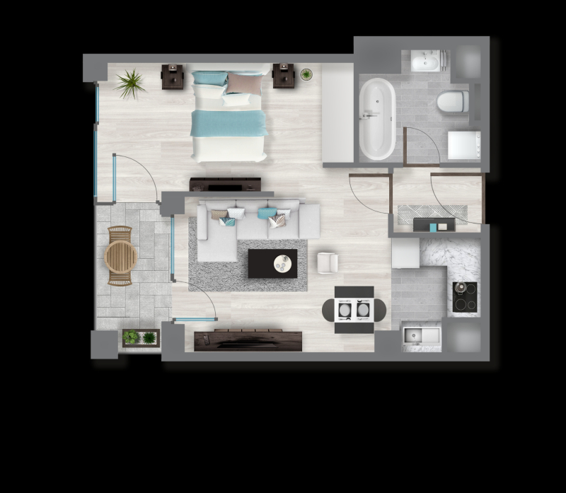 Az alaprajzokon ábrázolt berendezési tárgyak és bútorok, a burkolatok megjelenése nem képezi a szerződés tárgyát. A pontos felszereltségről a műszaki leírásban olvashat bővebben.