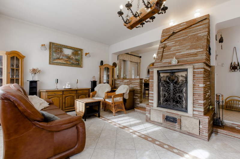 - Földszint: tágas nappali működő rusztikus kandallóval, étkező, konyha, fürdő, külön WC, műhely, garázs és pincelejáró.