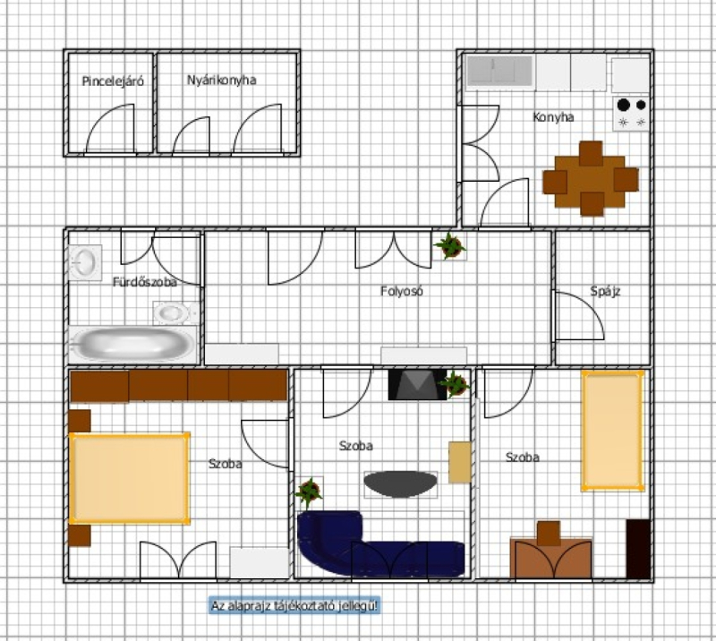 A házban 3 szoba, konyha, fürdőszoba, spájz és folyosó található, így ideális családok számára is.