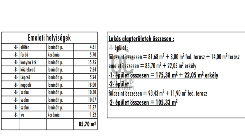 A társasházban két lakás található, egy földszinti és egy emeleti.